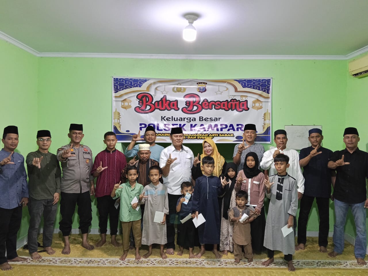 Kampar ( otdariau ) Dalam rangka memperingati bulan suci Ramadhan 1447 H tahun 2026, keluarga besar Polsek Kampar bersama mitra media dan masyarakat sekitar menggelar acara buka bersama sekaligus santunan kepada anak yatim, Kamis (13/3/2026). Kegiatan ini berlangsung penuh kehangatan di Mushola Muhajirin, Polsek Kampar, mulai pukul 17.45 WIB dan diisi dengan berbagai kegiatan yang bertujuan mempererat tali silaturahmi serta meningkatkan rasa kepedulian sosial di bulan penuh berkah ini.