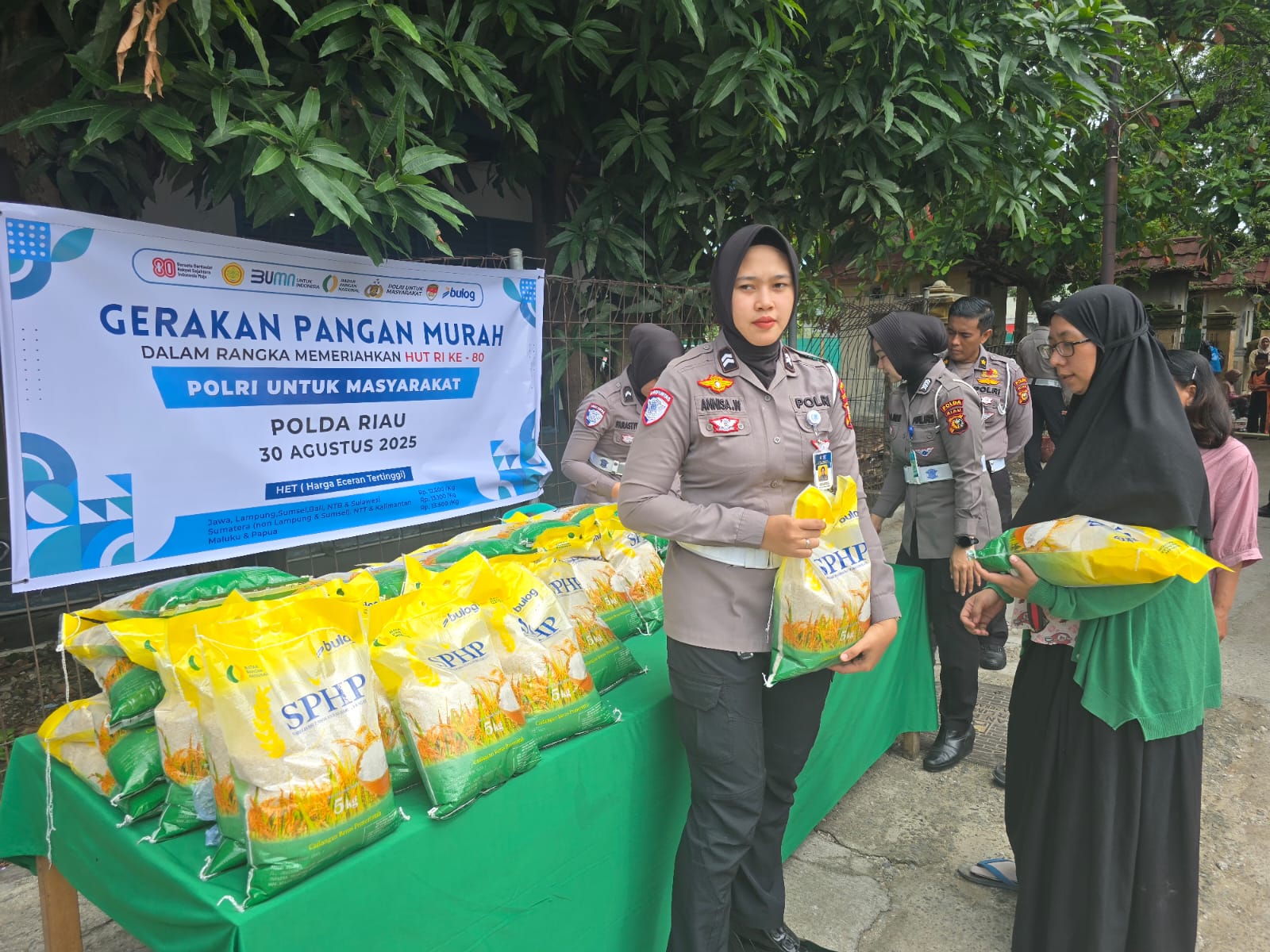 PEKANBARU ( otdariau) Ditlantas Polda Riau melalui Subdit Regident melaksanakan Gerakan Pangan Murah (GPM) dengan menyalurkan beras murah bagi masyarakat di Kota Pekanbaru, Sabtu (30/8/2025). Program ini menjadi salah satu langkah strategis Polri dalam mendukung stabilitas pangan dan mengurangi beban ekonomi masyarakat.