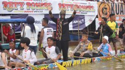 KUANTAN SINGINGI ( otdariau) Dalam rangka mendukung pelestarian budaya lokal, Kapolres Kuansing AKBP R. Ricky Pratidiningrat, S.I.K. M.H, ambil bagian dalam kegiatan Pacu Jalur Eksebisi yang digelar meriah di tepian Narosa, Teluk Kuantan pada Sabtu (23/8/25).