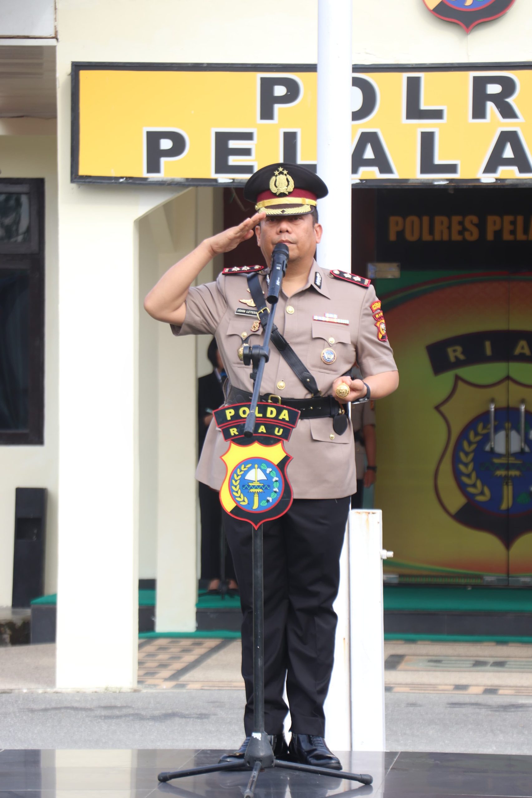 Upacara dihadiri oleh para PJU Polres Pelalawan dan personil gabungan Polres dan Polsek jajaran.