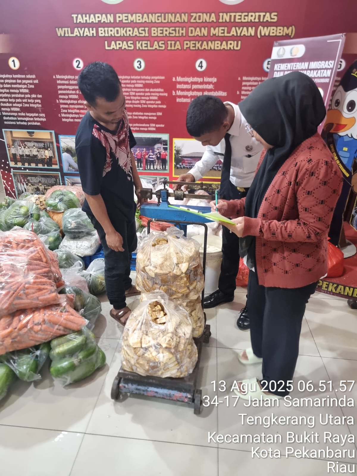 Pekanbaru, ( otdariau) Sudah menjadi kewajiban setiap Petugas Pemasyarakatan memberikan pelayanan yang optimal kepada Warga Binaan Pemasyarakatan (WBP) salah satunya adalah pemberian makanan yang baik dan layak. Oleh sebab itu dalam rangka menjaga mutu bahan makanan tersebut, setiap harinya Petugas Lembaga Pemasyarakatan (Lapas) Kelas IIA Pekanbaru melakukan pemeriksaan terhadap bahan makanan yang masuk ke dalam Lapas, Rabu (13/08/2025).