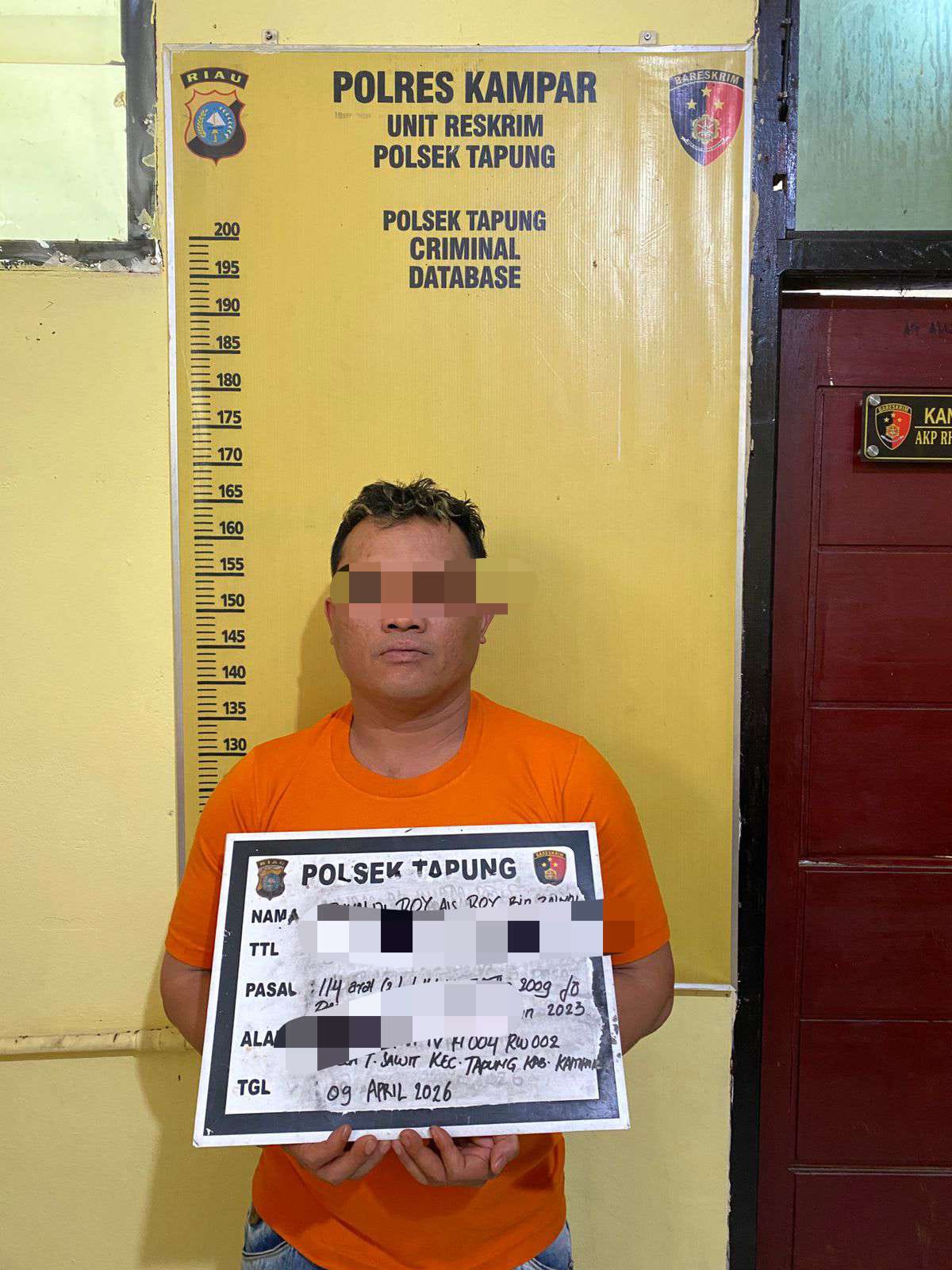 TAPUNG,( otdariau ) Polsek tangkap seorang pria berinisial Roy (37) warga Desa Tanjung Sawit Kecamatan Tapung di rumahnya pada Kamis (9)4/2026) sekira pukul 13.30 Wib.