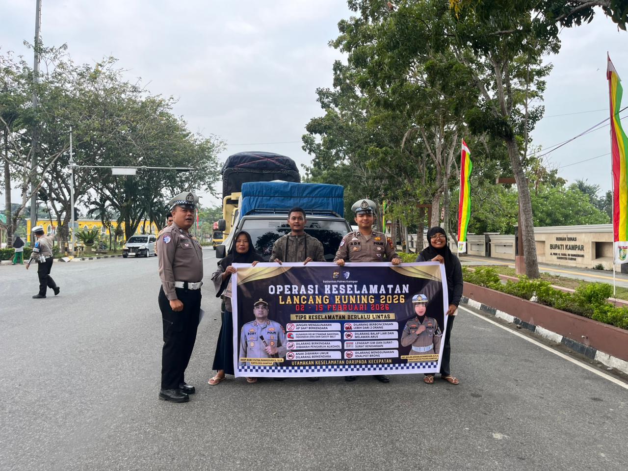 Kasat Lantas Polres Kampar AKP Wulan Afdhalia Ramdhani, S.Tr.K., S.I.K., melalui Kanit Kamsel Satlantas Polres Kampar Aiptu Junaydi, SE, bersama Aiptu Dhannes Hamda dan Bripda Ade Novri Ramadani, turun langsung memberikan edukasi kepada para pengguna jalan.