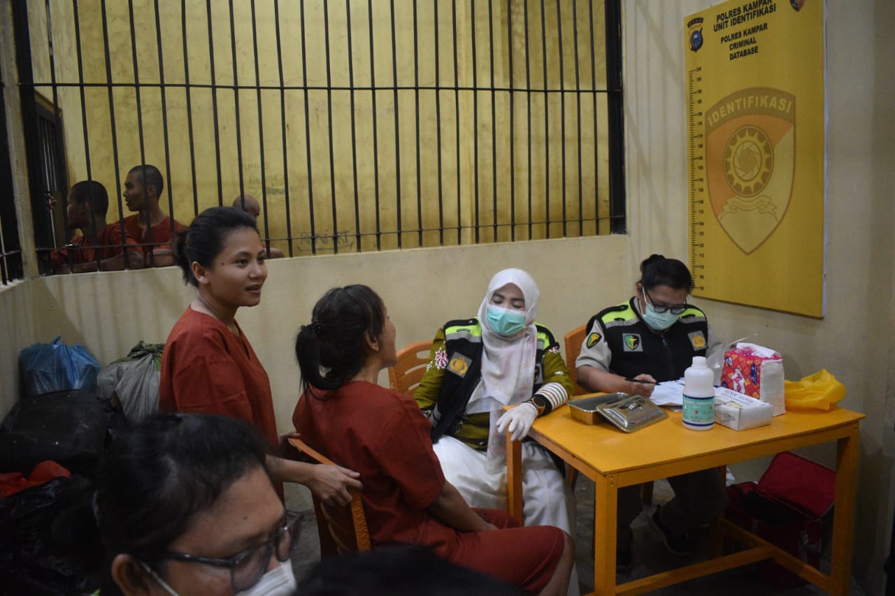 Tim Subbidokpol Biddokkes Polda Riau yang terdiri dari Aiptu Veradian, Aiptu Abdul Rohim, Briptu Ariadi Suardi, Penda Sabam Masrida, dan Pengtu Elalia Anggraini, memberikan pelayanan pemeriksaan kesehatan mulut dan gigi secara menyeluruh. Pemeriksaan dilakukan satu persatu untuk memastikan kondisi kesehatan gigi dan mulut setiap tahanan.